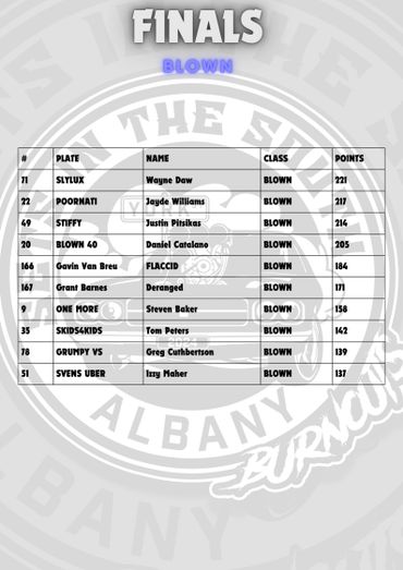 This event was created to offer a new experience to Albany, bringing high powered cars to a unique pad. Funds raised from this event are used to improve the speedway facilities and support the growth of The West Oz Burnout Series and the Sets In The South event.